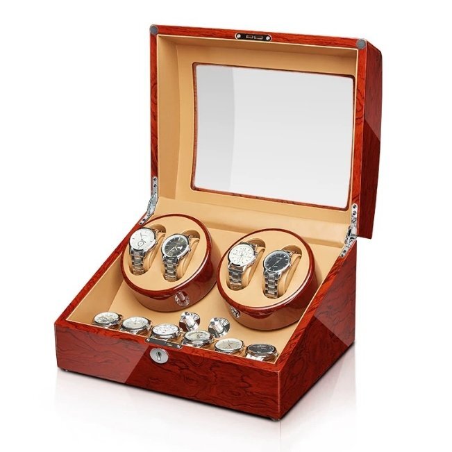 新型の腕時計自動巻き上げ機( 4+6 本巻き) ウォッチワインダー 自動巻き時計ワインディングマシーン 日本製 マブチモーター 設計 高級木