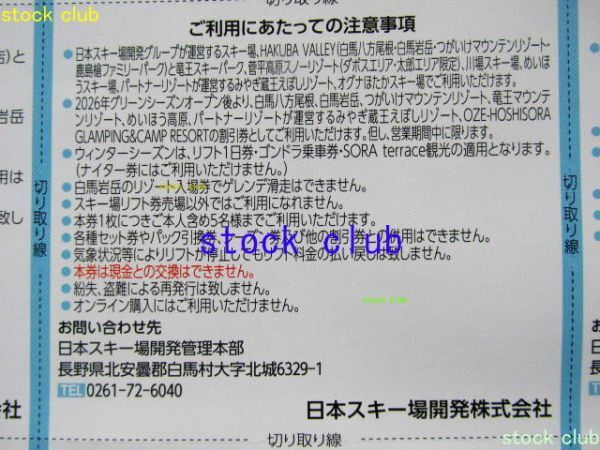 商品説明 日本スキー場開発株主優待の日本スキー場開発グループが運営するリフト1日券割引チケット(1枚で5名様ご利用可)1枚です。