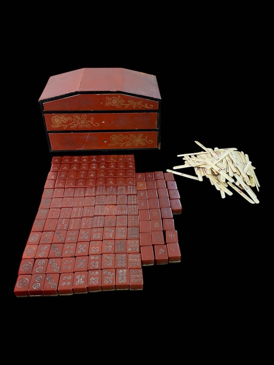 Product name: S13/ 時代 麻雀牌 茶色牌 背竹 点棒骨材 アンティーク 骨董 全て揃い
