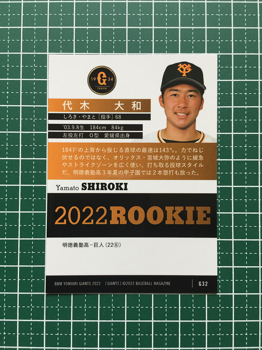 Product name: ★BBM 2022 プロ野球 ベースボールカード #G32 代木大和[読売ジャイアンツ/巨人]レギュラーカード ルーキー「RC」★