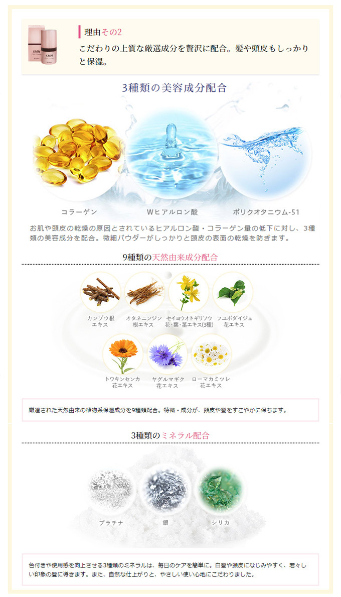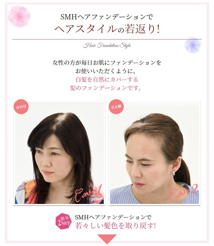女性の方が毎日お肌にファンデーションをお使いいただくように、白髪を自然にカバーする髪のファンデーションです。