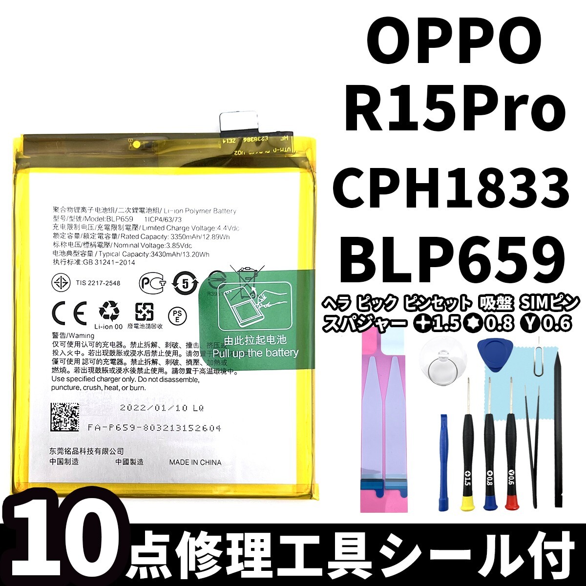 国内即日発送!純正同等新品!OPPO R15 PRO バッテリー BLP659 CPH1833 電池パック交換 内蔵battery 両面テープ 修理工具付