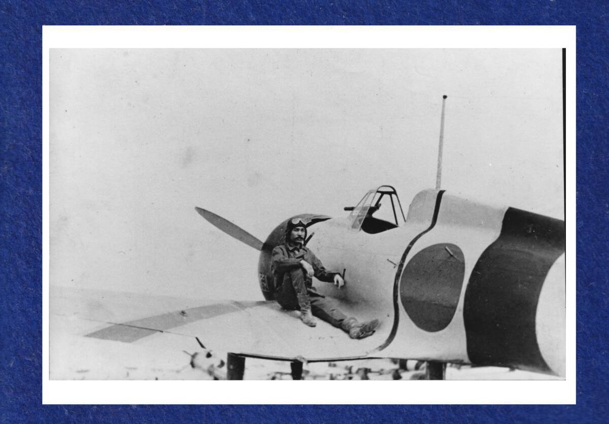 飛行機写真(複製) 1枚 空母「蒼竜」の96式艦上戦闘機 人物は羽切松雄氏 戦前海軍航空隊