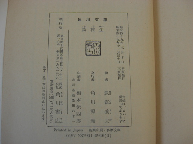 高校生 (角川文庫) ポール・ジンデル/〔著〕 武富義夫/訳