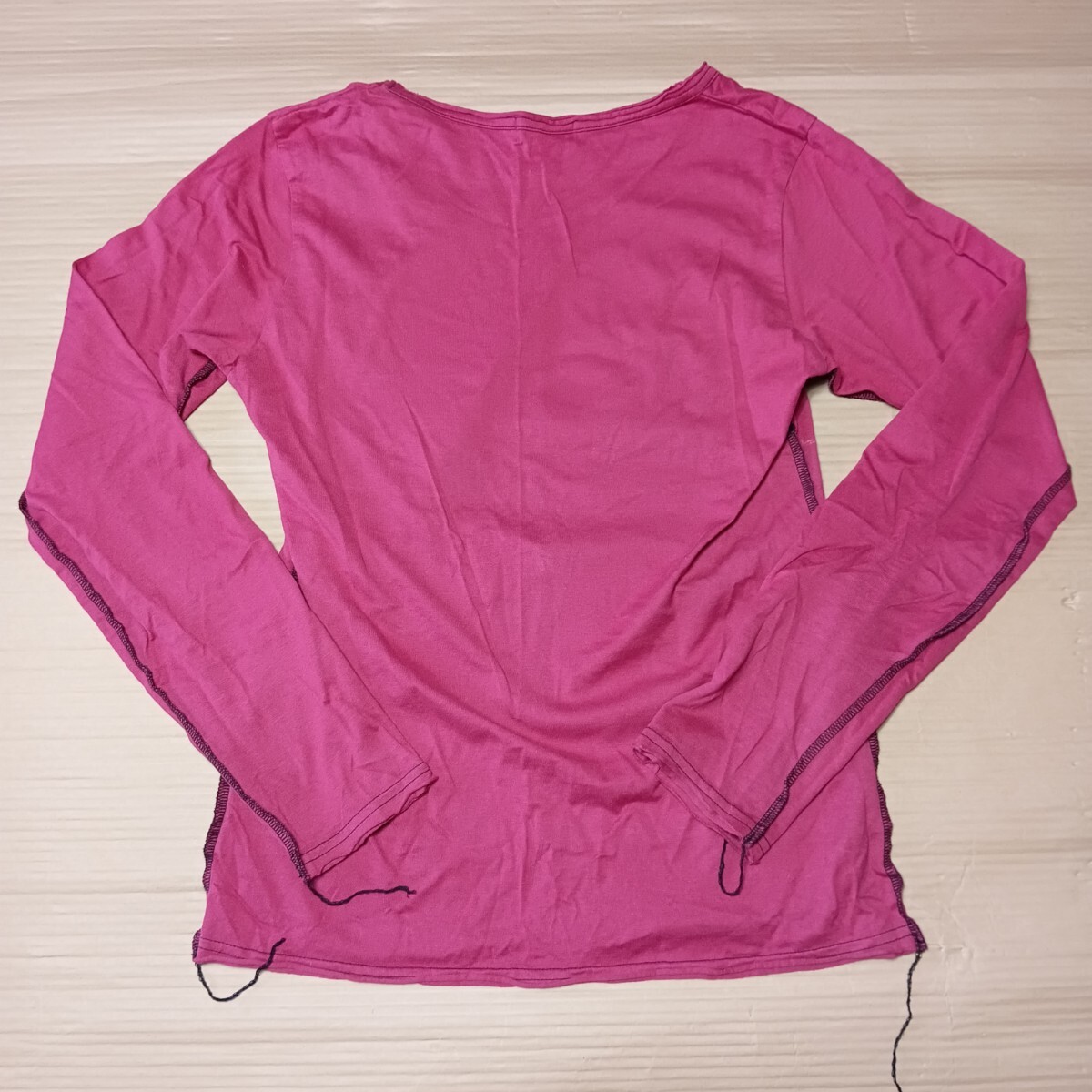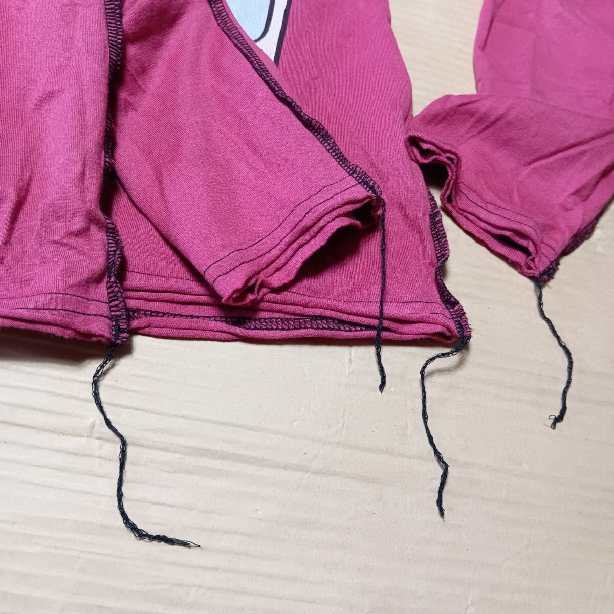 両サイド裾・袖口の糸が垂れていますが、元々のデザインなのかは不明です。
