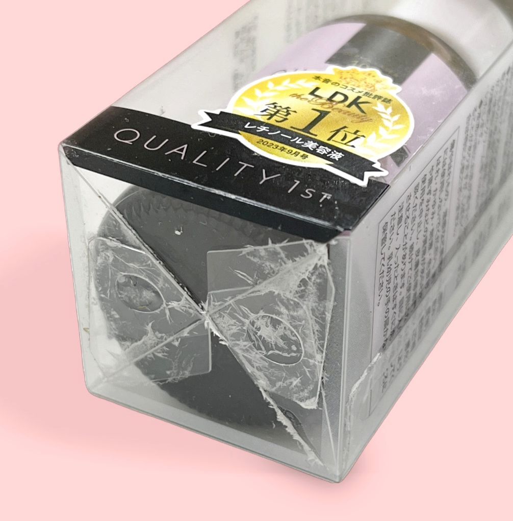 パッケージに破損、変形、シール付着、液漏れあと等あり(写真参照)