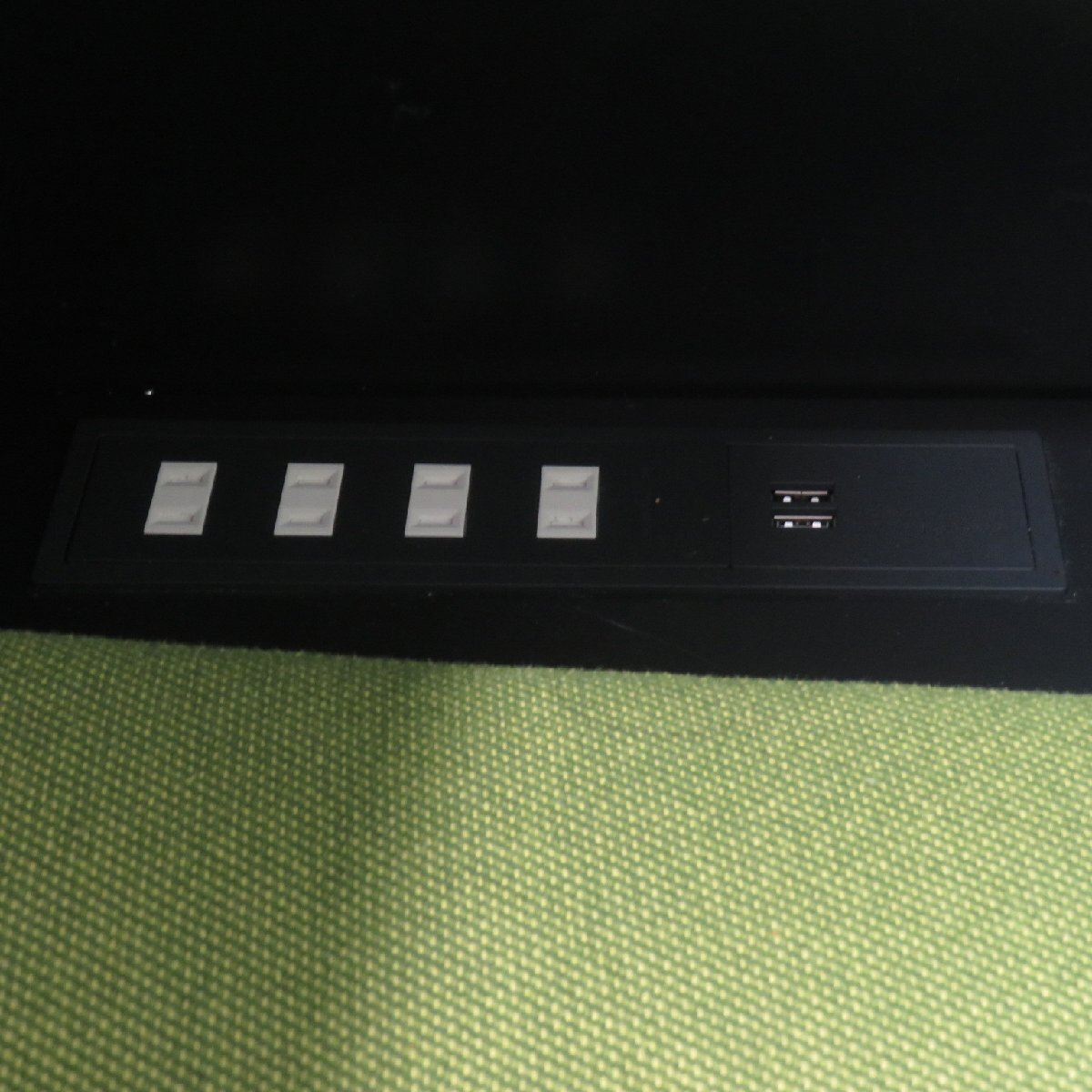 材  質 " 本体/パネル / 不織布(ポリエステル100%) ソファ(張地) / 布(ポリエステル100%) ソファ(その他) / 合板・天然木 テーブル(天板) / メラミン化粧板 テーブル(その他) / スチール塗装仕上げ 脚/可動式天板(45度回転可能) コンセント(15A)×4個(合計1500W、ほこりシャッター付き、電源コード長さ2m) USB端子(Type-A)×2個(合計2A、出力電圧DC5V、電源コード長さ2m) ※給電専用"