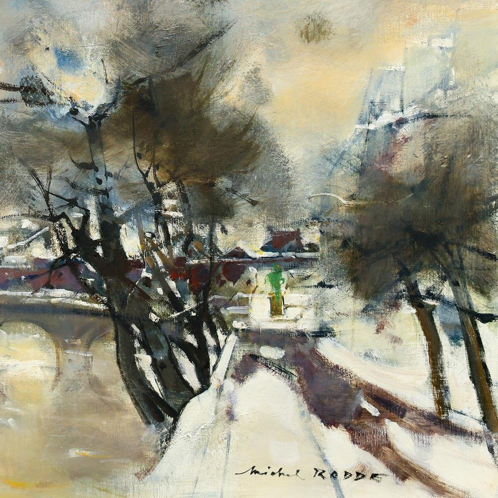 Product name: 【真作】【WISH】ミッシェル・ロッド Michel Rodde「パリの岸辺」油彩 20号 大作 松坂屋取扱 ◆雪のパリ 〇フランス画壇重鎮 #25122733