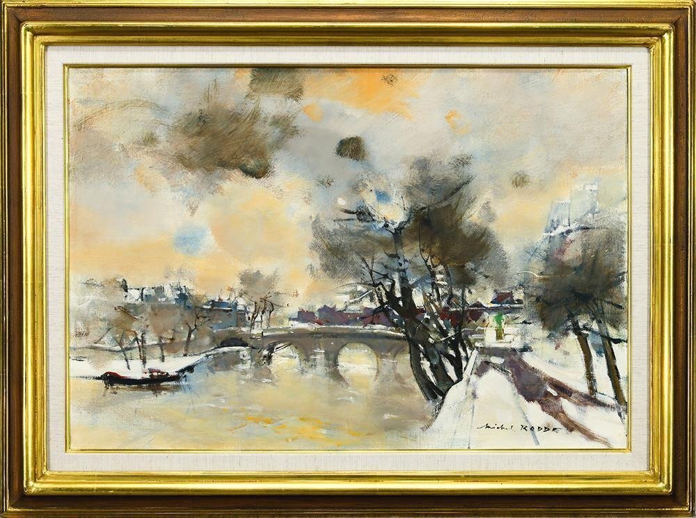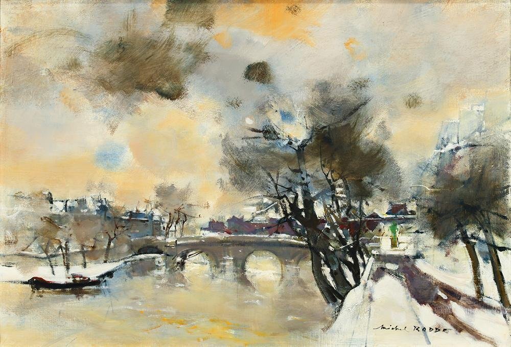 Store 【真作】【WISH】ミッシェル・ロッド Michel Rodde「パリの岸辺」油彩 20号 大作 松坂屋取扱 ◆雪のパリ 〇フランス画壇重鎮 #25122733