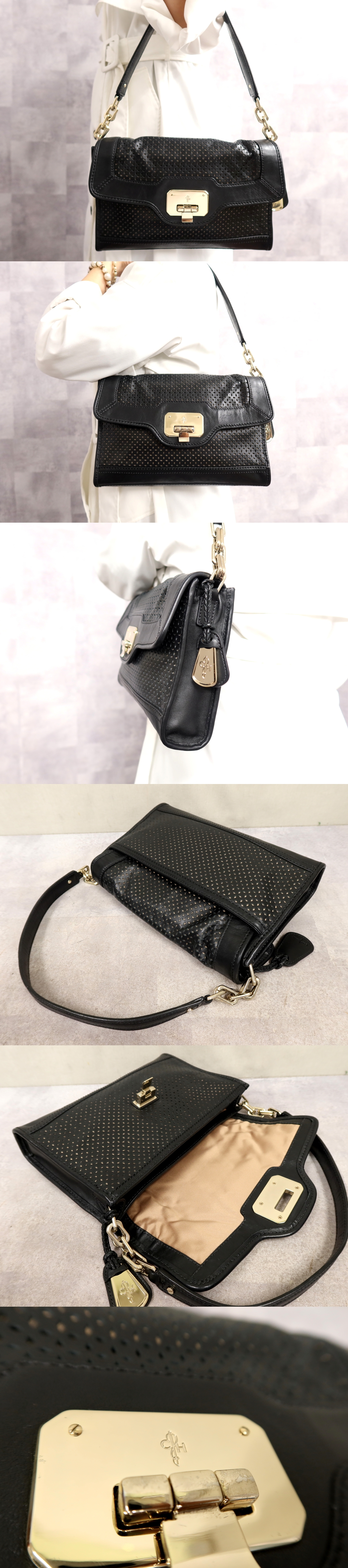 Product name: ●超美品●COLE HAAN コールハーン●フラップ●カーフ レザー 本革●ワンショルダー バッグ●黒●ゴールド金具●腕掛け●かばん●Js66884