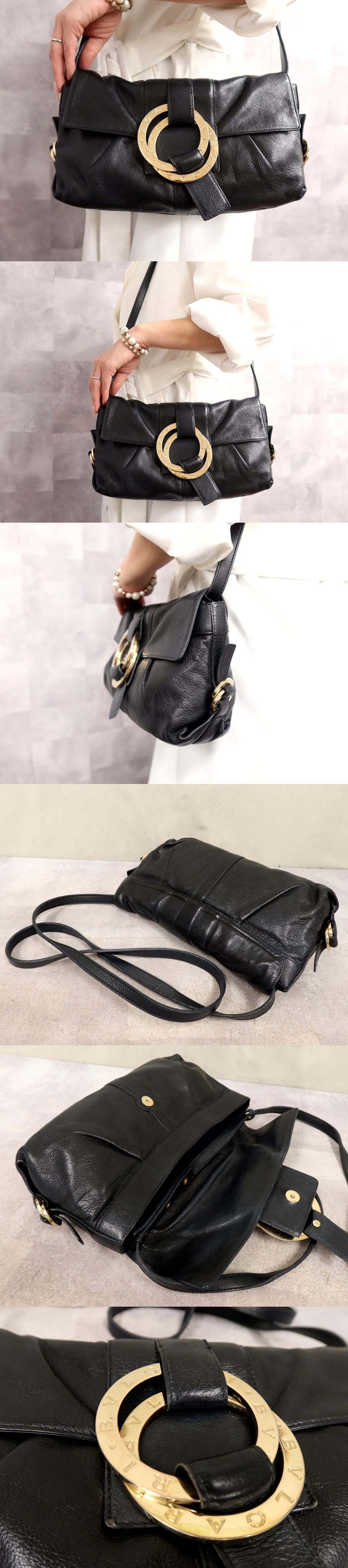 Product name: ●超美品●BVLGARI ブルガリ●チャンドラ●カーフ レザー 本革●ショルダー バッグ●黒●ゴールド金具●肩掛け●かばん●Js67194