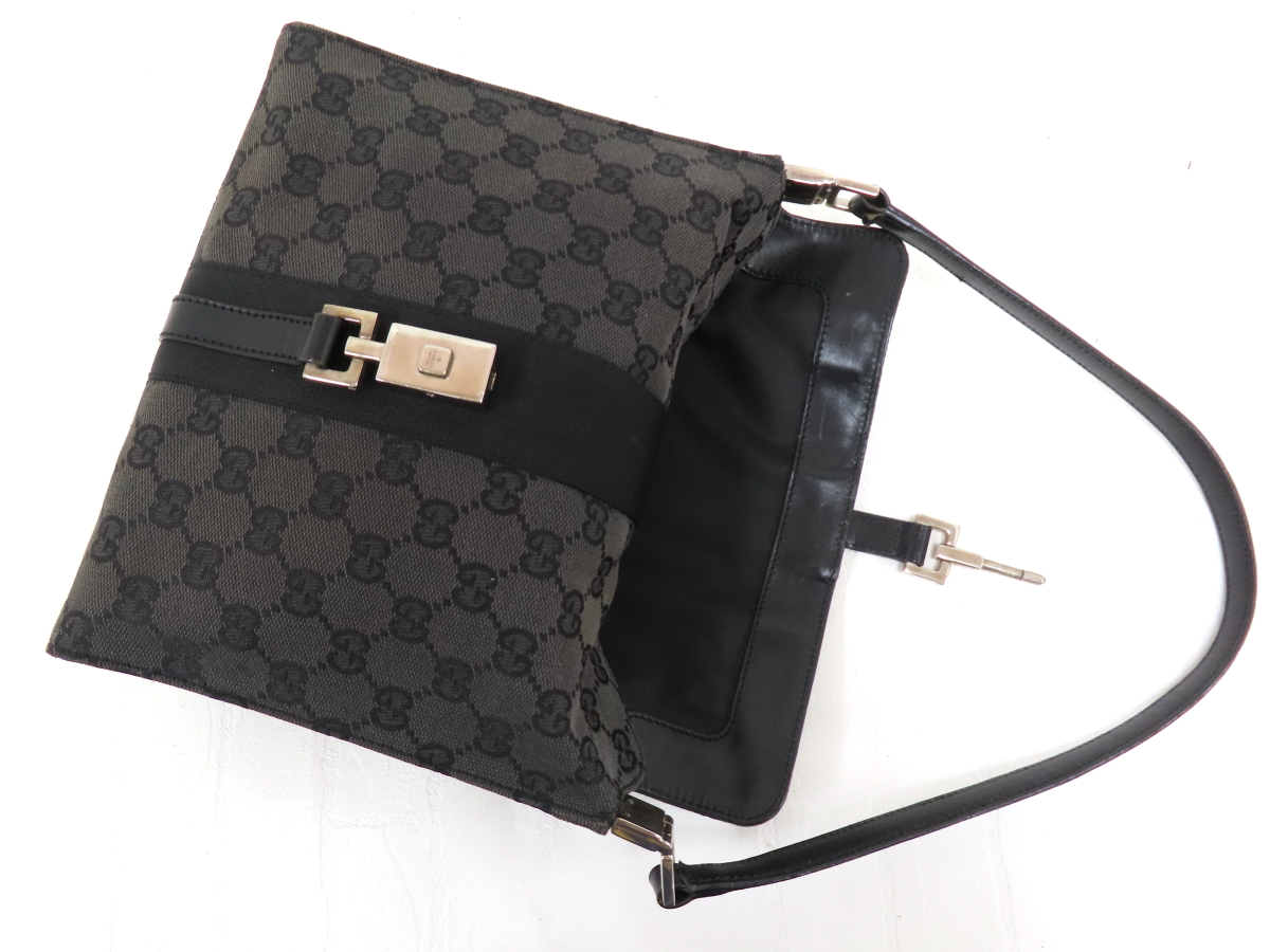 Store ◆美品◆GUCCI グッチ◆ジャッキー◆GGキャンバス カーフ レザー 本革◆ハンド バッグ◆グレー 黒 シルバー金具◆イタリア製◆A16864
