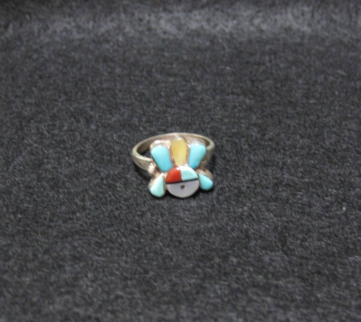 80's ビンテージ ズニ族 天然石 ステアリングシルバー マルチカラー 太陽神 送料込
