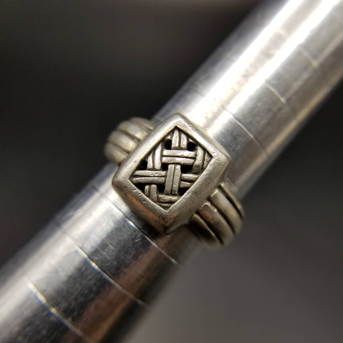 バスケット編み 透かし スクエアトップ ヴィンテージ シルバー リング 銀 指輪 重厚感 ユニセックスジュエリー Y16-I