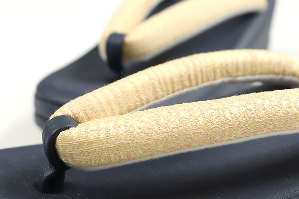 こちらのお品は、薄黄色の山口美術織物の生地を使用した鼻緒がすげられております。