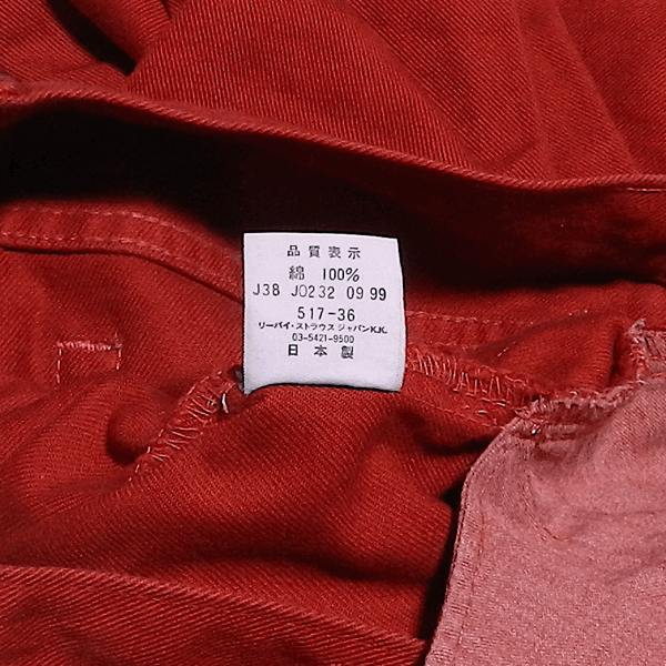 Product name: リーバイス 517 80's 復刻 モデル 旧パッチ ホワイトタブ カラー デニム パンツ ジーンズ カラーパンツ 赤 29 x 34 インチ 美品
