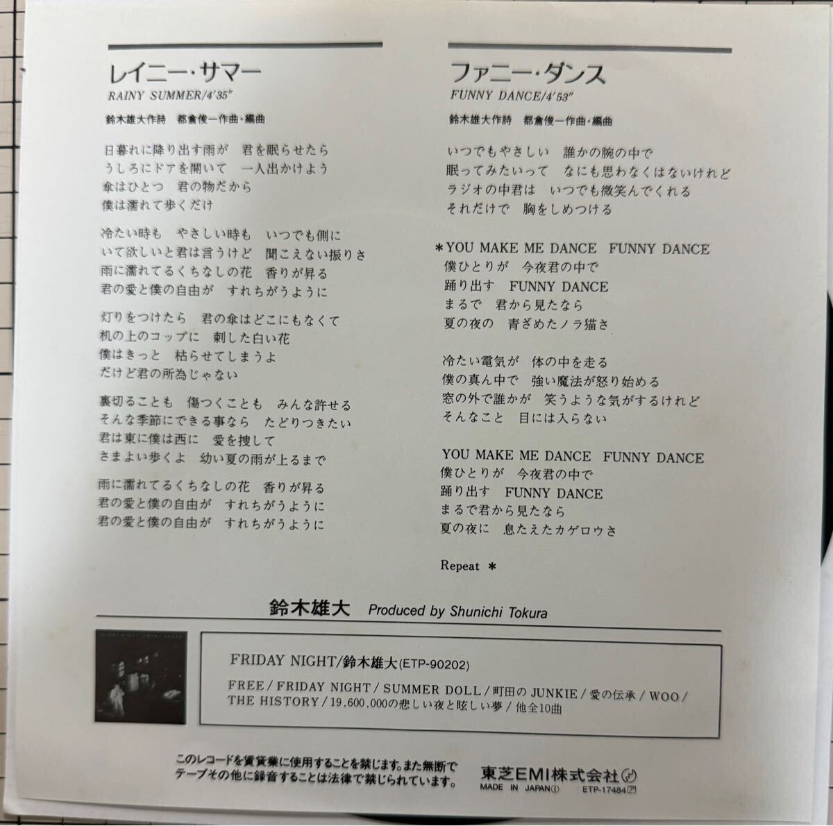 Product name: 即決◆鈴木雄大/レイニー サマー/ファニー ダンス (美品EP) 10枚まで送料230円