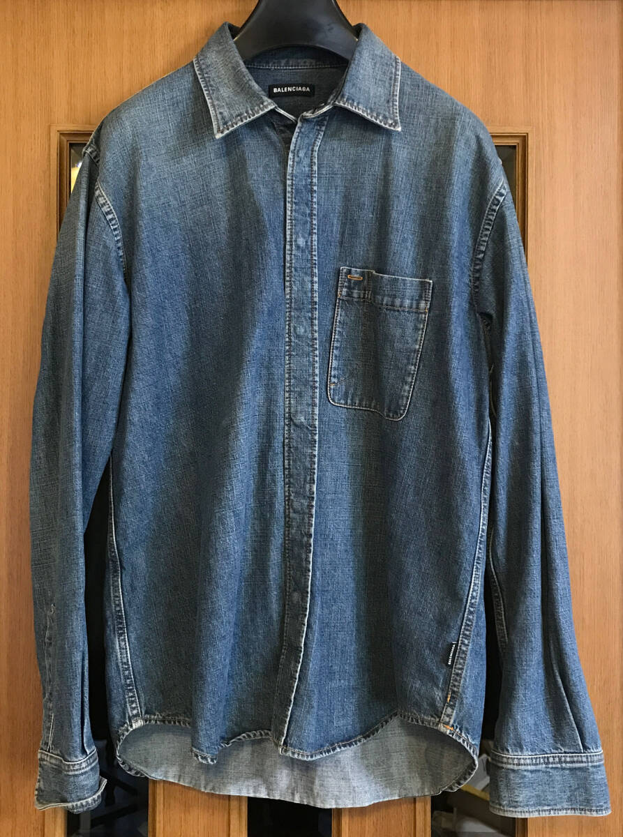 Product name: Balenciaga/バレンシアガ/583490 TEW07/バックロゴ刺繍/デニム/長袖 シャツ/ウォッシュ加工/インディゴ/サイズ32