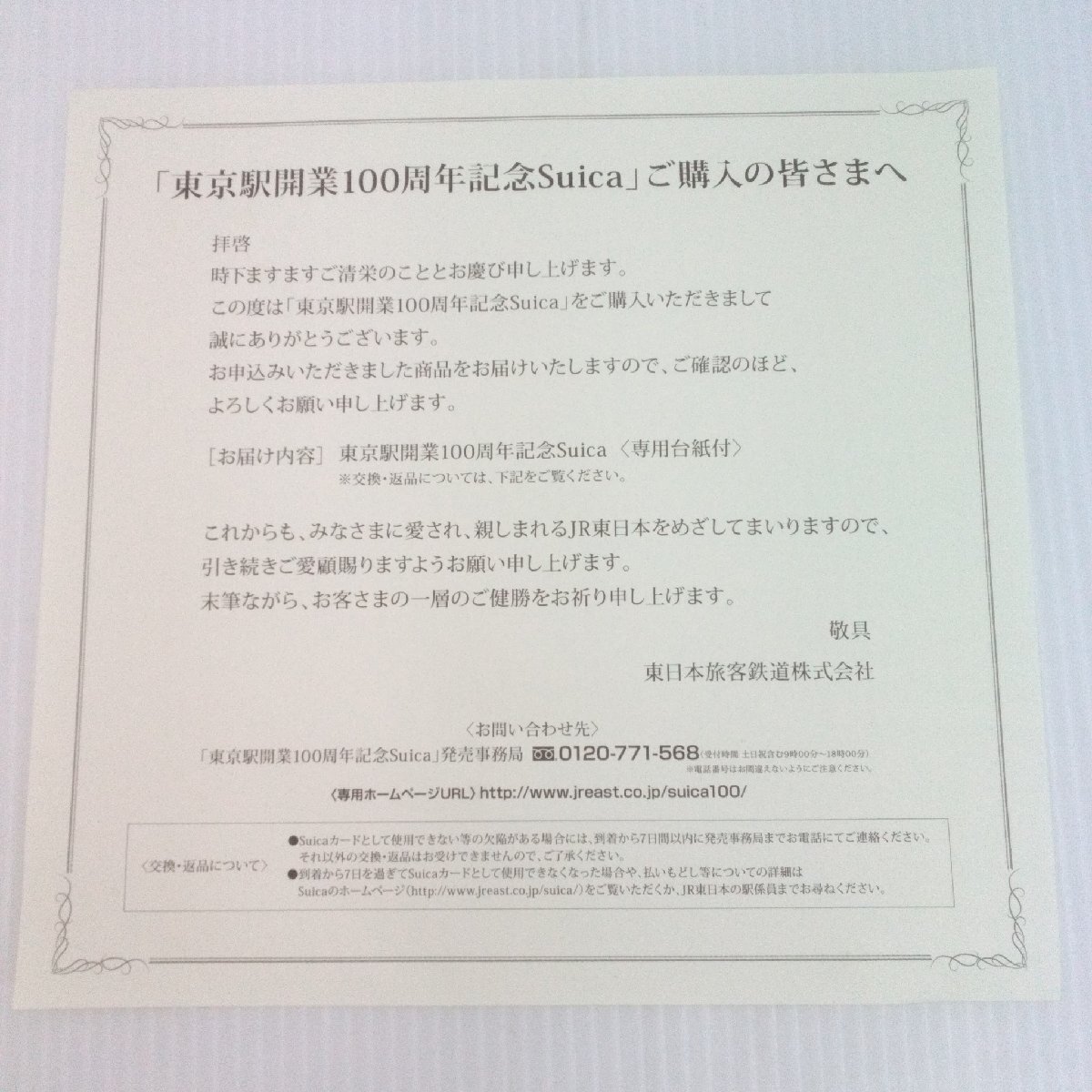 ●商品名:東京駅開業 100周年記念 Suica 3枚セット