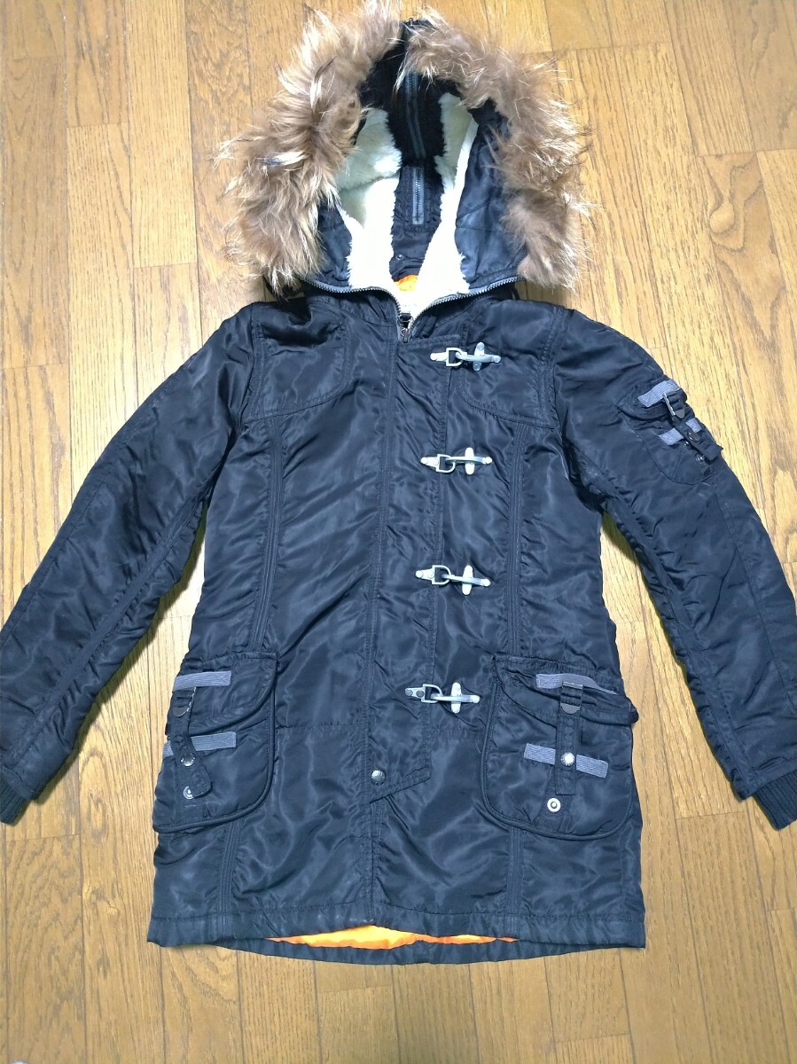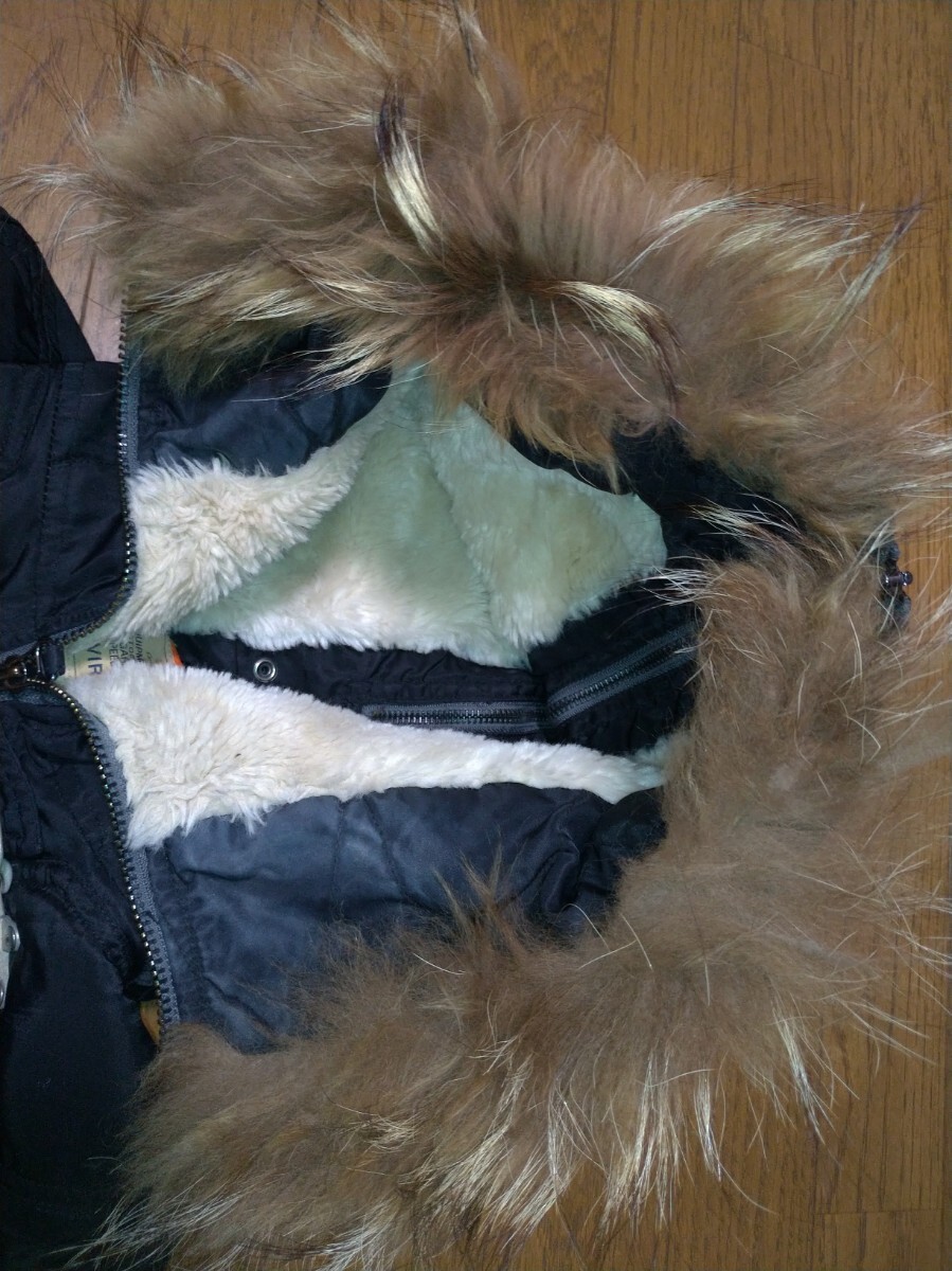 USEDで使用感はございます。それなりに着られたお品です。古着です。目立つ汚れや傷はありませんが古着に不慣れなお方や美品をお探しのお方はトラブルの原因になりますのでお控えください。USED趣向のお方でしたら問題なくご活躍いただけます。上野商会取り扱い正規品ですが品質タグの文字が消えてしまっておりますのでご了承ください。表面素材はナイロンで中綿入り、ファーはリアルファーです。ファーは取り外しは可能ですがフード取り外しは不可です。金属フックが新品時より曇りがあります。光沢があるようなナイロン素材ですが使用感でのテカリも表面や袖リブにあります。。中綿量は多めではなくすっきり着れます。