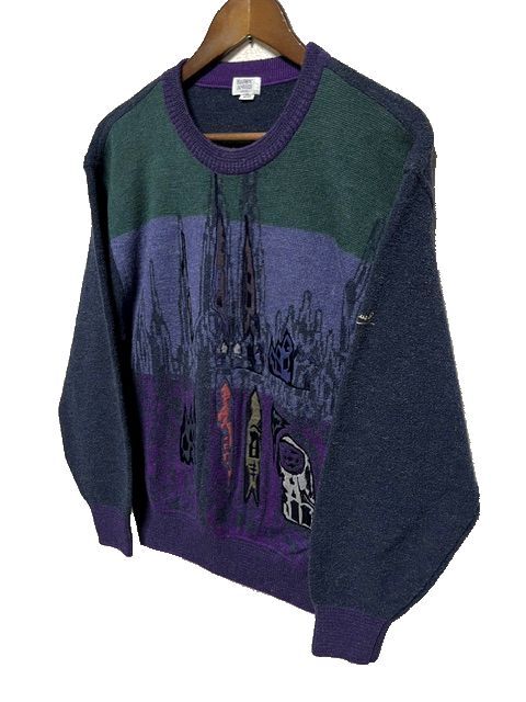 Product name: ★美品★90's HARDY AMIES ハーディエイミス 織り柄 刺繍入り ウール ニット セーター サイズM★マルチカラー クルーネック 丸首 日本製