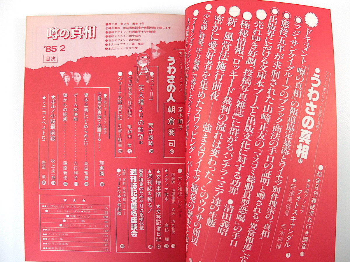 噂の真相 1985年2月号/山崎正友 文庫本ブーム 清田義昭 パンチラマニア ワイセツ摘発の歴史と現状 ジャニーズ事務所 大京観光 朝倉喬司