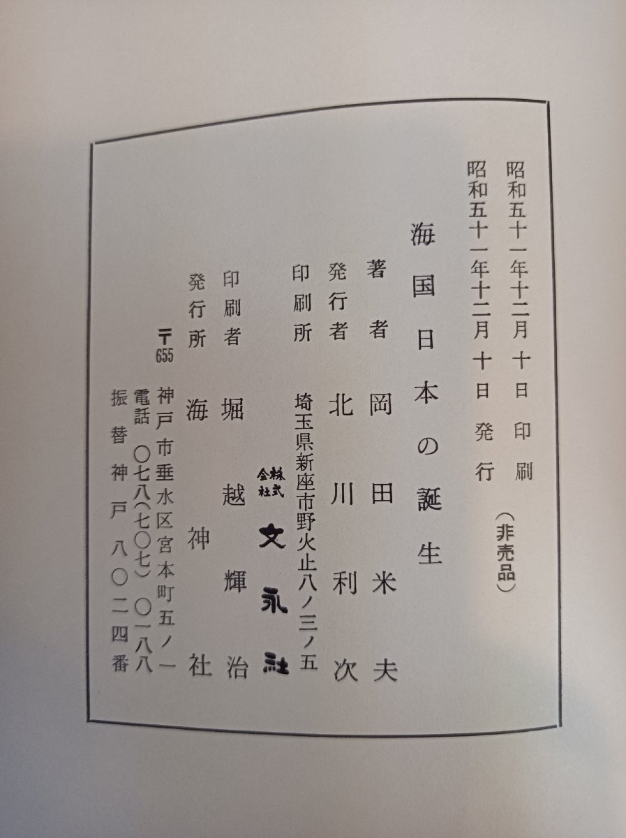 非売品 海国日本の誕生 -海神族の展開- 岡田米夫著 1976 外箱付き 文永社/海人/神話/海神/海人族/魏志倭人伝/九州/大和/航路/B3501032
