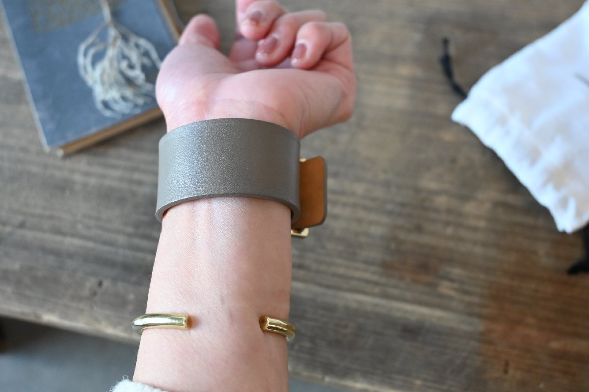 ★美品 Maison Boinet/メゾンボワネ *ワイドレザー ブレスレット/ 牛革* 古着のgplus広島 2501 2412r4①