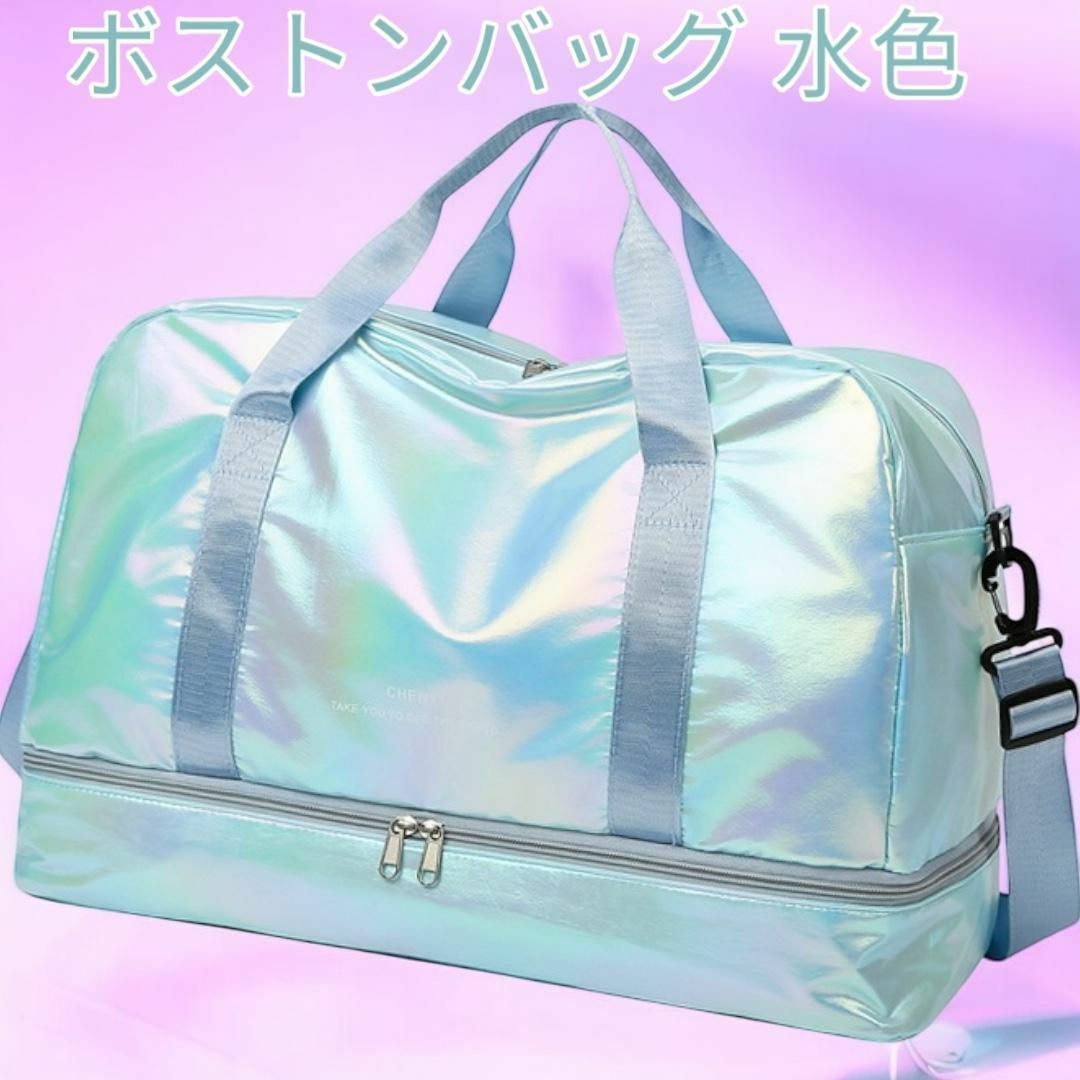 ボストンバッグ トラベルバッグ ショルダーバッグ シューズ収納 2wayバック 肩掛け 旅行 トラベル 部活 新品 水色 送料無料 最短発送