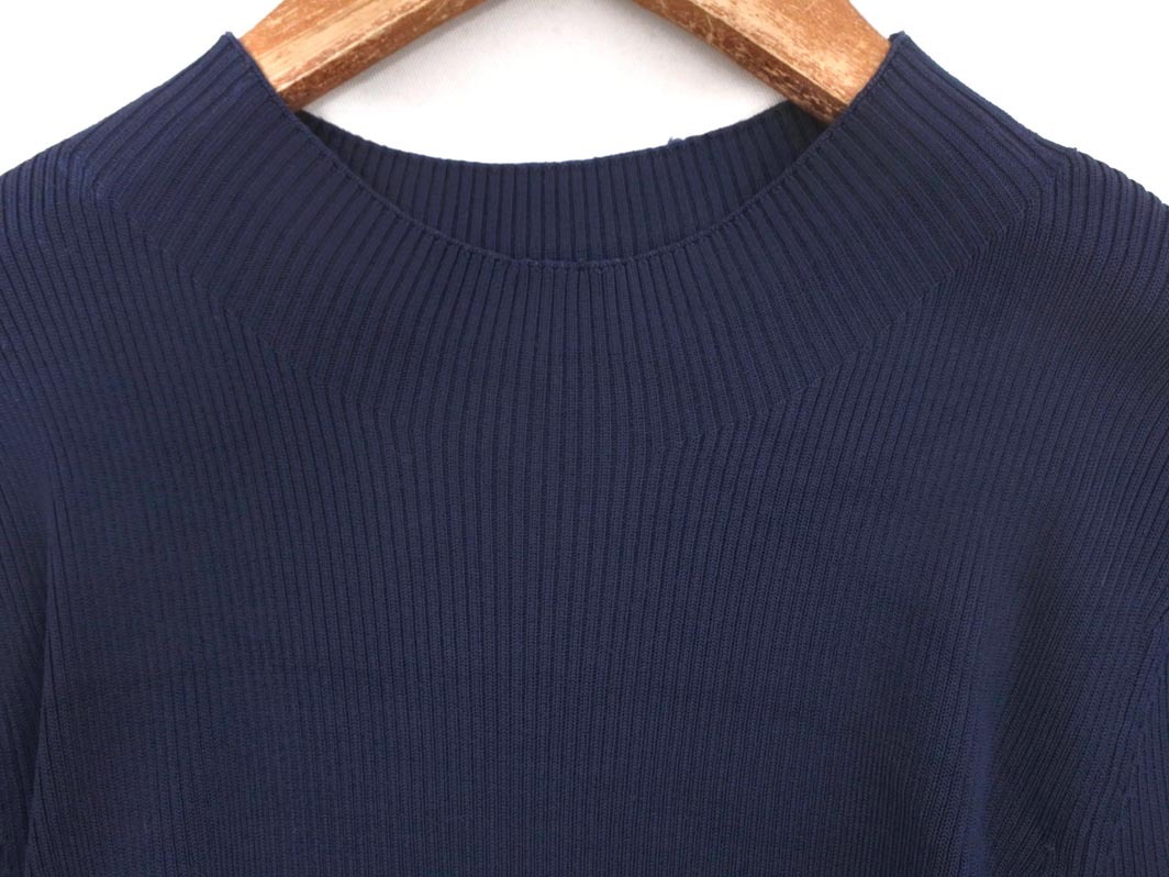 INDIVI インディヴィ リブ モックネック ニット セーター size38/紺 ◇■ ☆ fba3 レディース