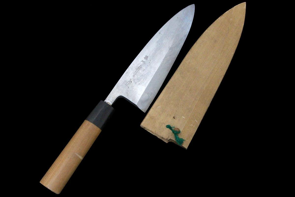 築地有次 出刃包丁 霞 六寸 朴柄 白鞘付