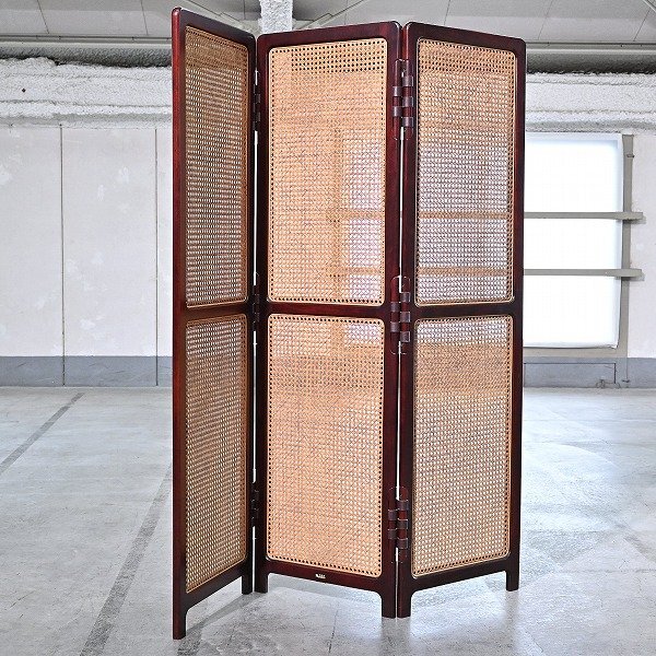 Product name: オールドカリモク パーテーション A 間仕切り 仕切り スクリーン 3連 籐 ラタン アジアンテイスト ジャパニーズモダン 和室 カリモク