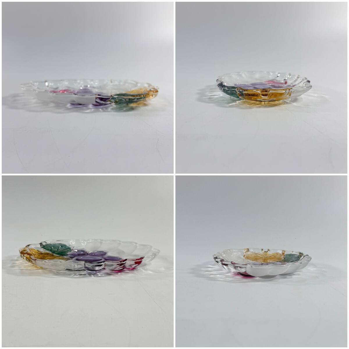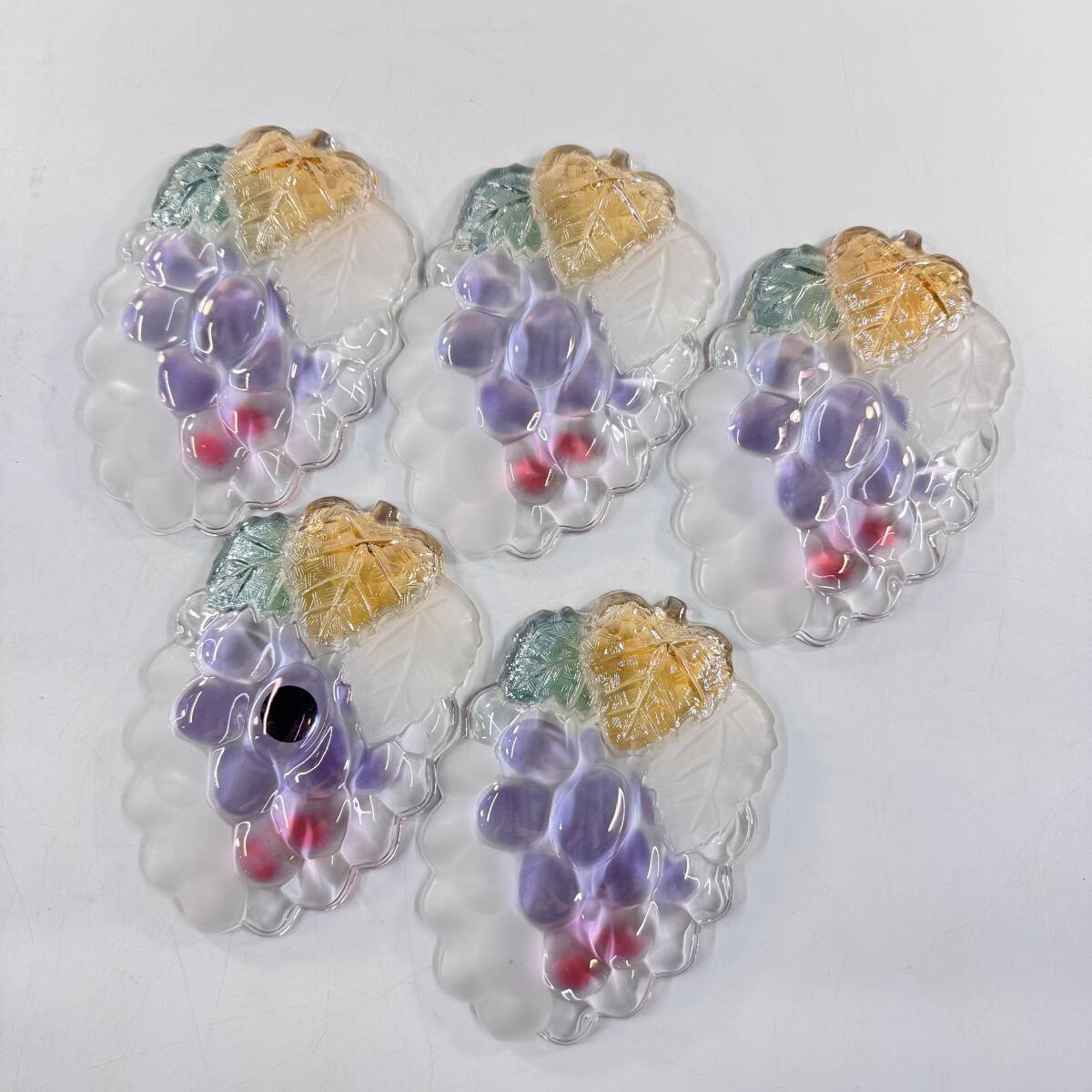 SOGA GLASS 曽我ガラス カップ&ソーサー 5客 葡萄モチーフ パープル×イエロー×グリーン 色付きガラス 経年保管品 現状品の出品です。