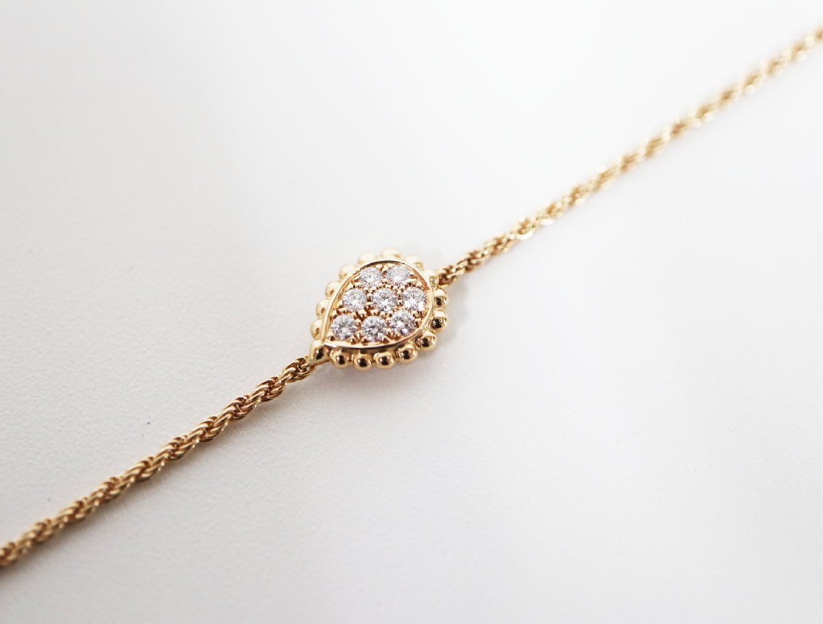 スネークの神秘的な美しさを表現したセルパンボエム。極めて華奢なピンクゴールドのチェーンに彫金を施すことで、フェミニンなデザインを洗練されたエレガントな雰囲気に仕上げています。
