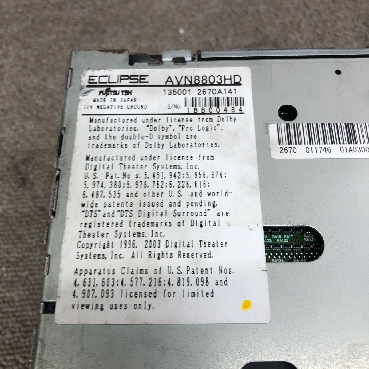 AV3-299 激安 カーナビ ECLIPSE AVN8803HD 135001-2670A141 HDDナビ CD DVD 通電未確認 ジャンク