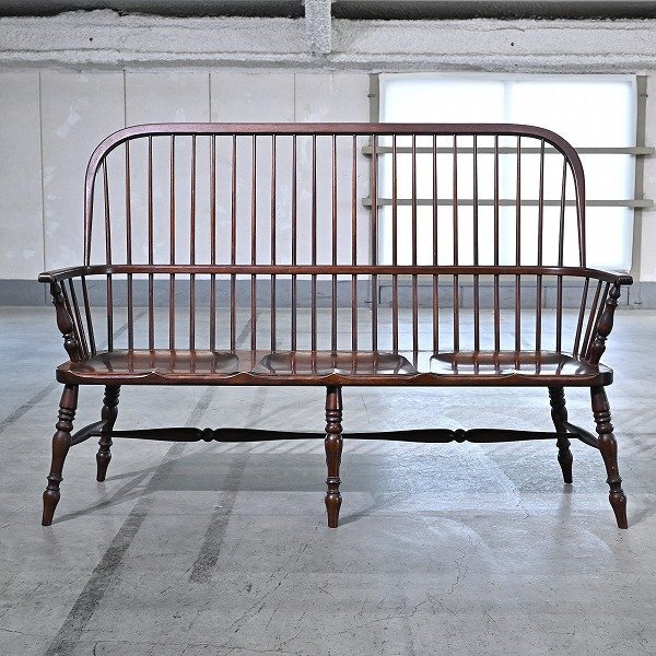 Product name: 松本民芸家具 39万「513型長ウィンサーチェアⅢ」長椅子 ミズメザクラ 無垢材 曲木 ダイニング リビング 三人掛け 応接室 アンティーク調