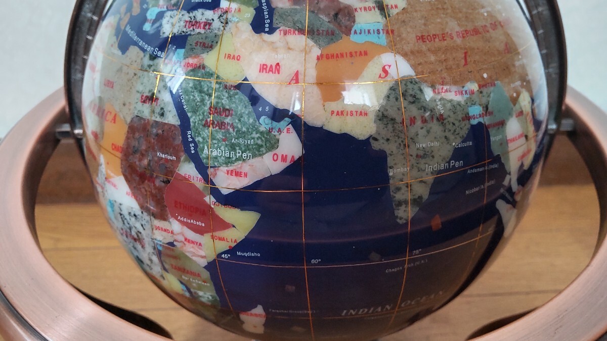 即決 地球儀 ラピスラズリ 天然石 ジェムストーングローブ コンパス付き