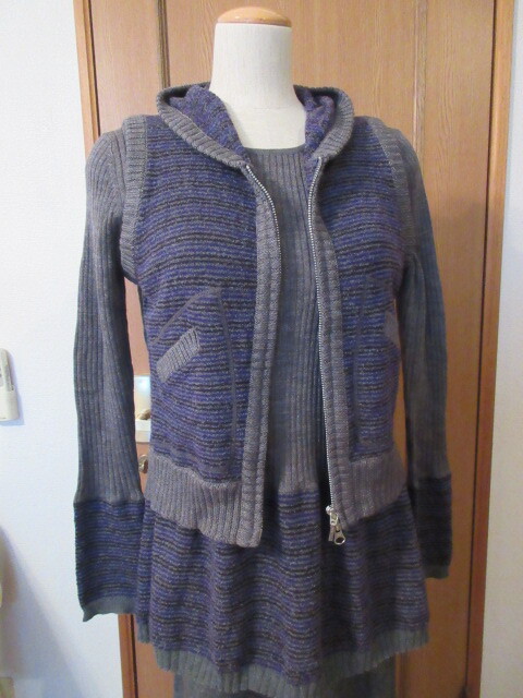 ■チュニックセーター&ベストフーテッドカーディガン■11号■約526g