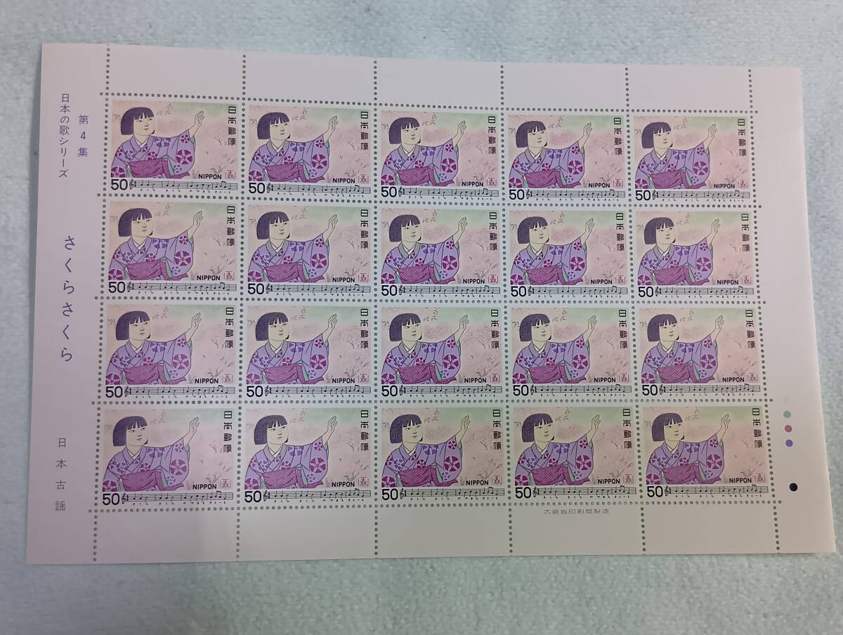 日本の歌シリーズ 第4集 さくらさくら 1980 切手シート1枚当時の袋付き U-1