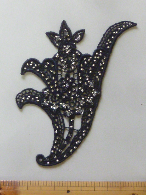 (499)手加工ビーズ付きモチーフ レーヨンケミカルレース かわいい草花のような柄 濃紺 1枚