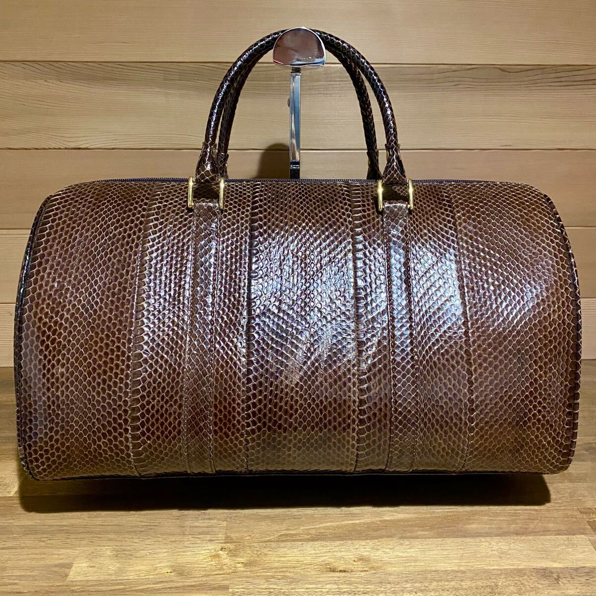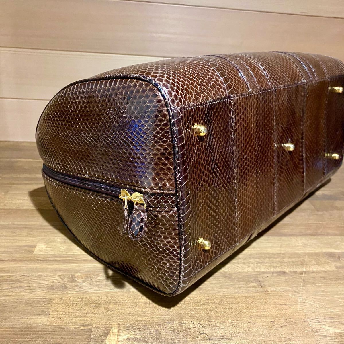 Product name: 即決 THE BAG ボストンバック コブラ パイソンレザー ブラウン エキゾチックレザー ラウンドファスナー ハンドバック