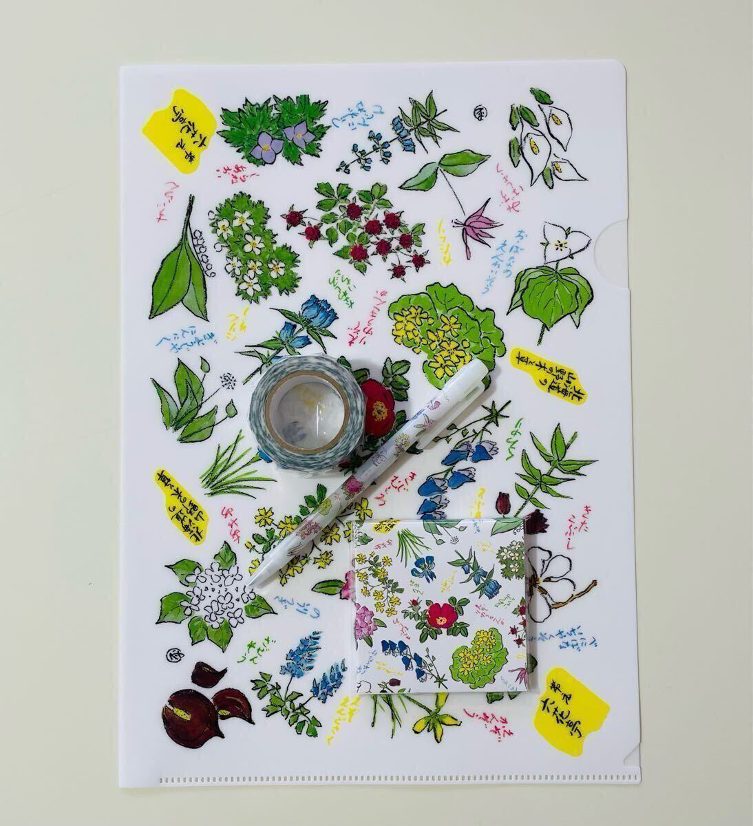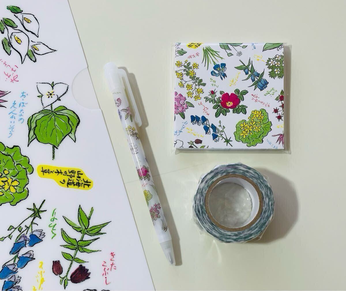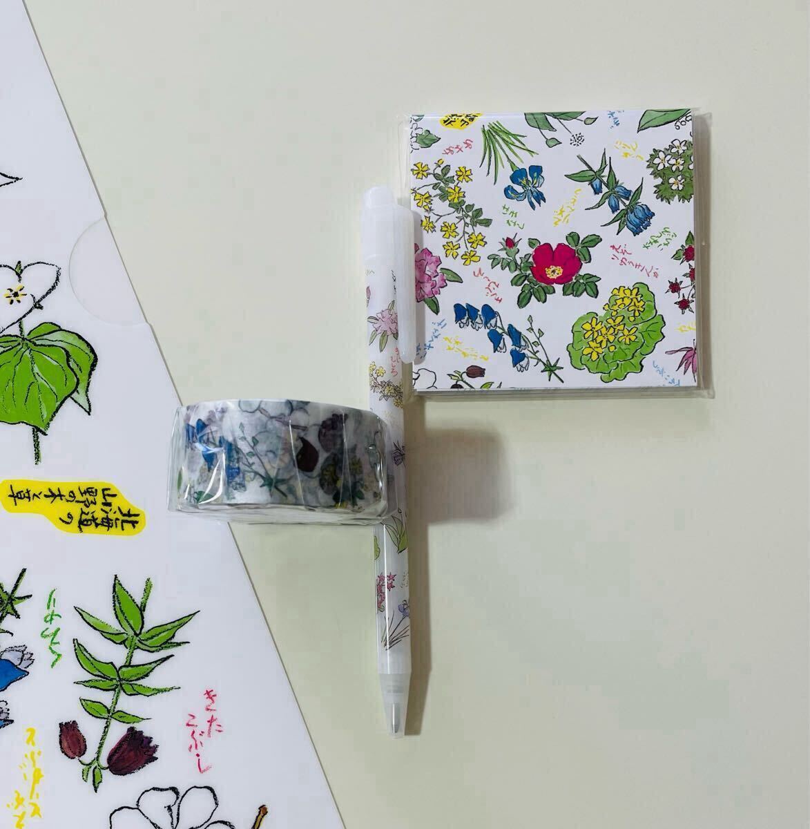 六花亭 オリジナル文具4種セット 花柄マスキングテープ ボールペン 付箋 クリアファイル マルセイバターサンド
