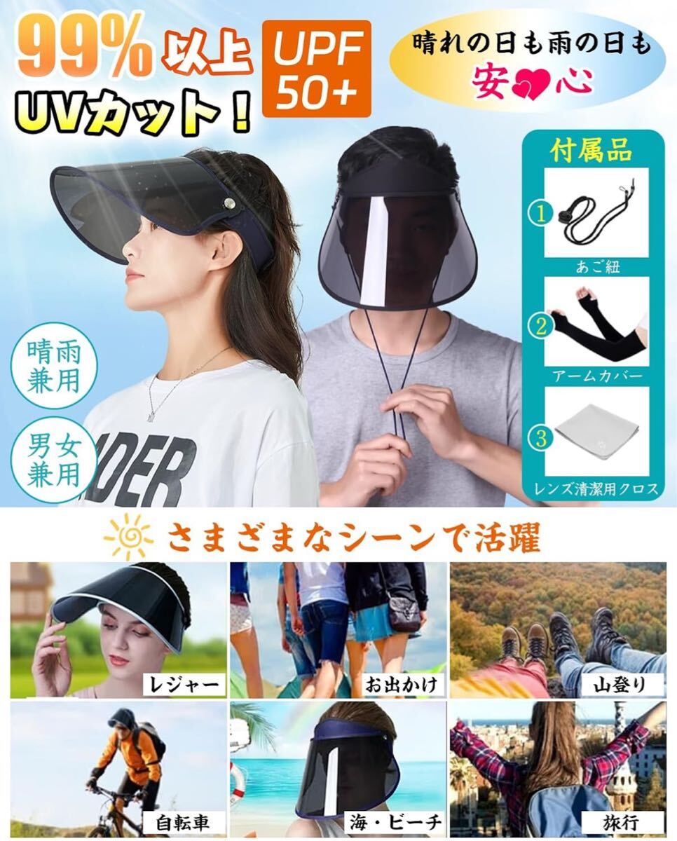 1円スタート サンバイザー UVカット 日除け帽子 自転車 冷感アームカバー付き 日焼け防止 レインバイザー アウトドア Free Size