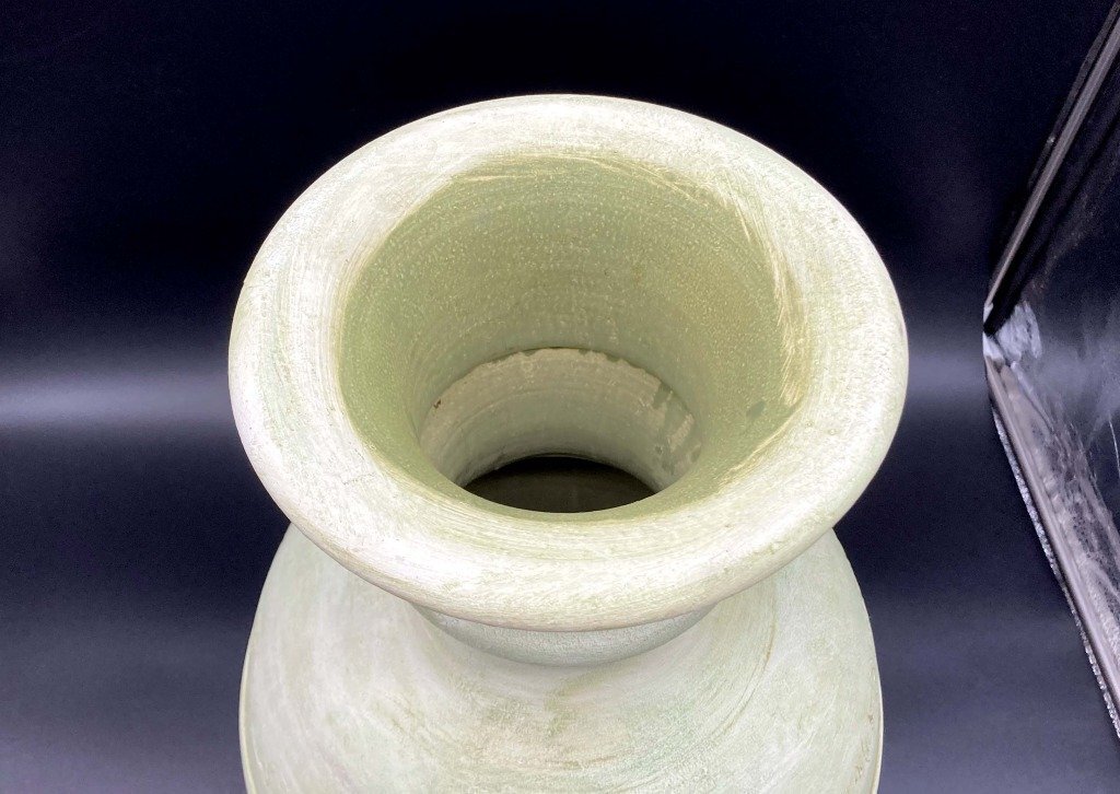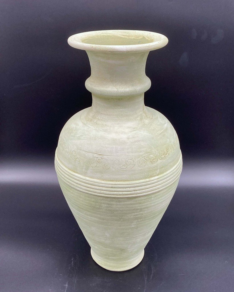 壺 花瓶 詳細不明 直径32cm×高さ53cm ホワイト グリーン 焼物 陶芸 工芸品 置物 骨董品 インテリア コレクション
