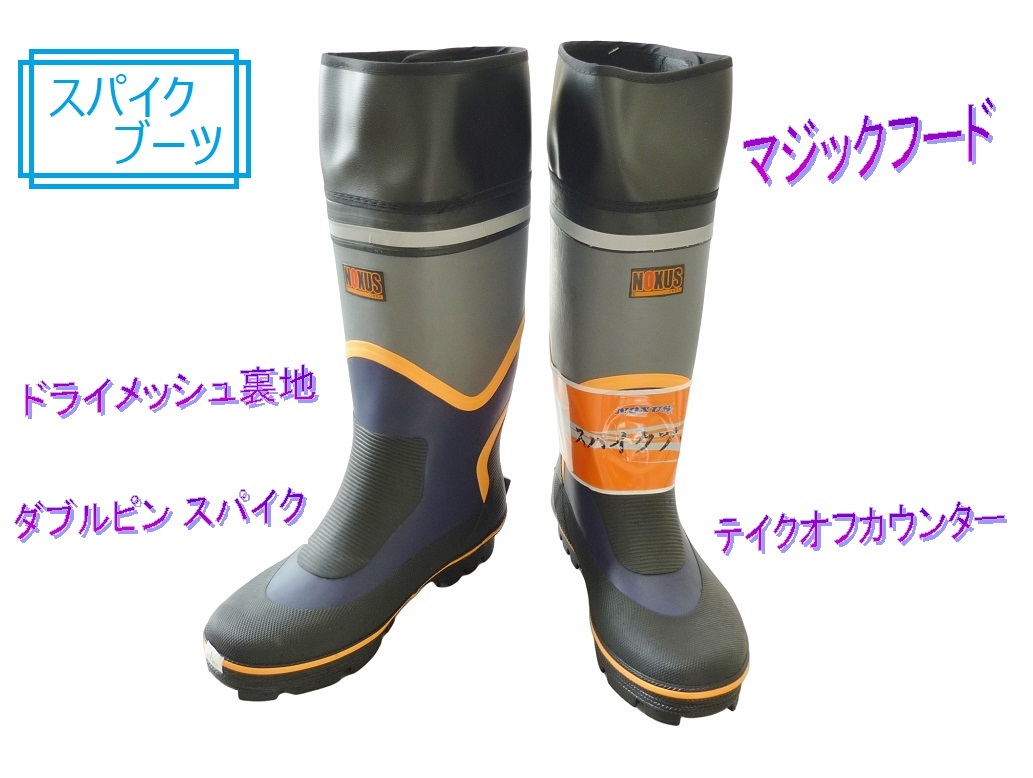 Product name: 780/格安!スパイクブーツ 作業長靴 XLサイズ 27.5-28.0cm 天然ゴム ドライメッシュ裏地 防錆ダブルピン フード付 山林業 農作業 土木建設