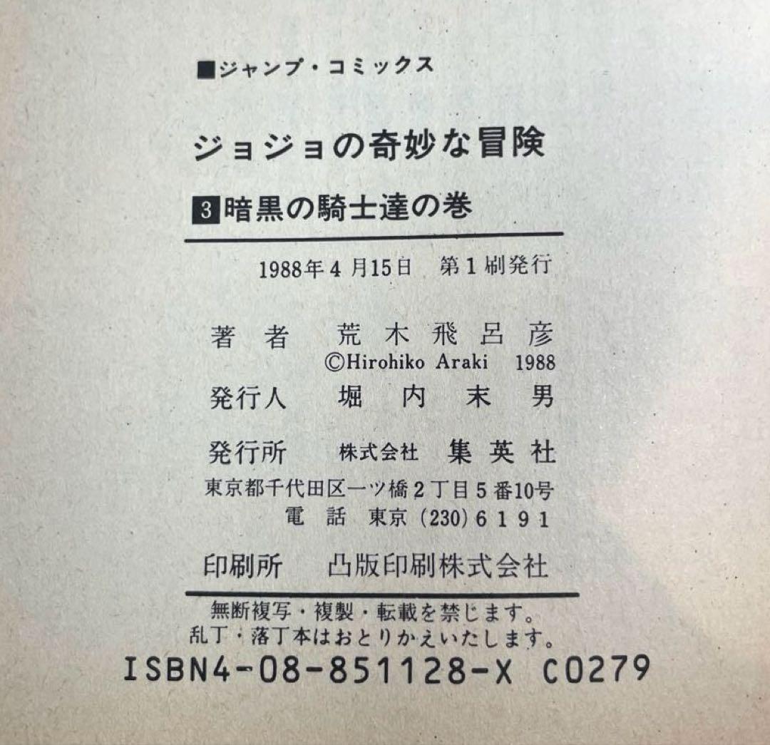 荒木飛呂彦先生の「ジョジョの奇妙な冒険」1巻、2巻、3巻の初版本セットです!