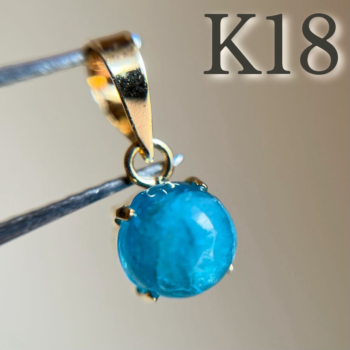K18 天然石ネオンブルーアパタイト ペンダントトップ ラウンドカボ 18金イエローゴールド