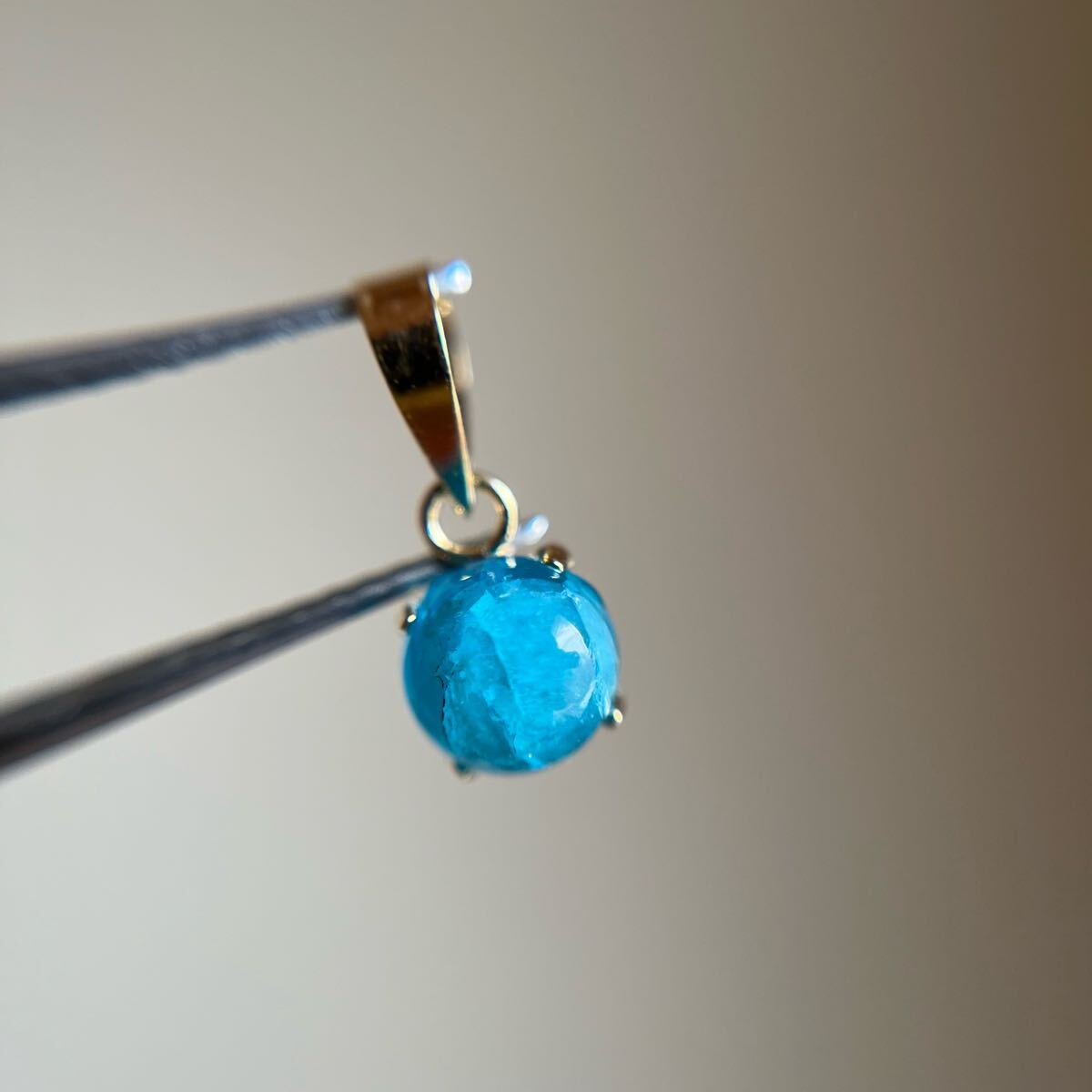 天然石ネオンブルーアパタイトの5mmラウンドカボションシェイプのペンダントトップです。