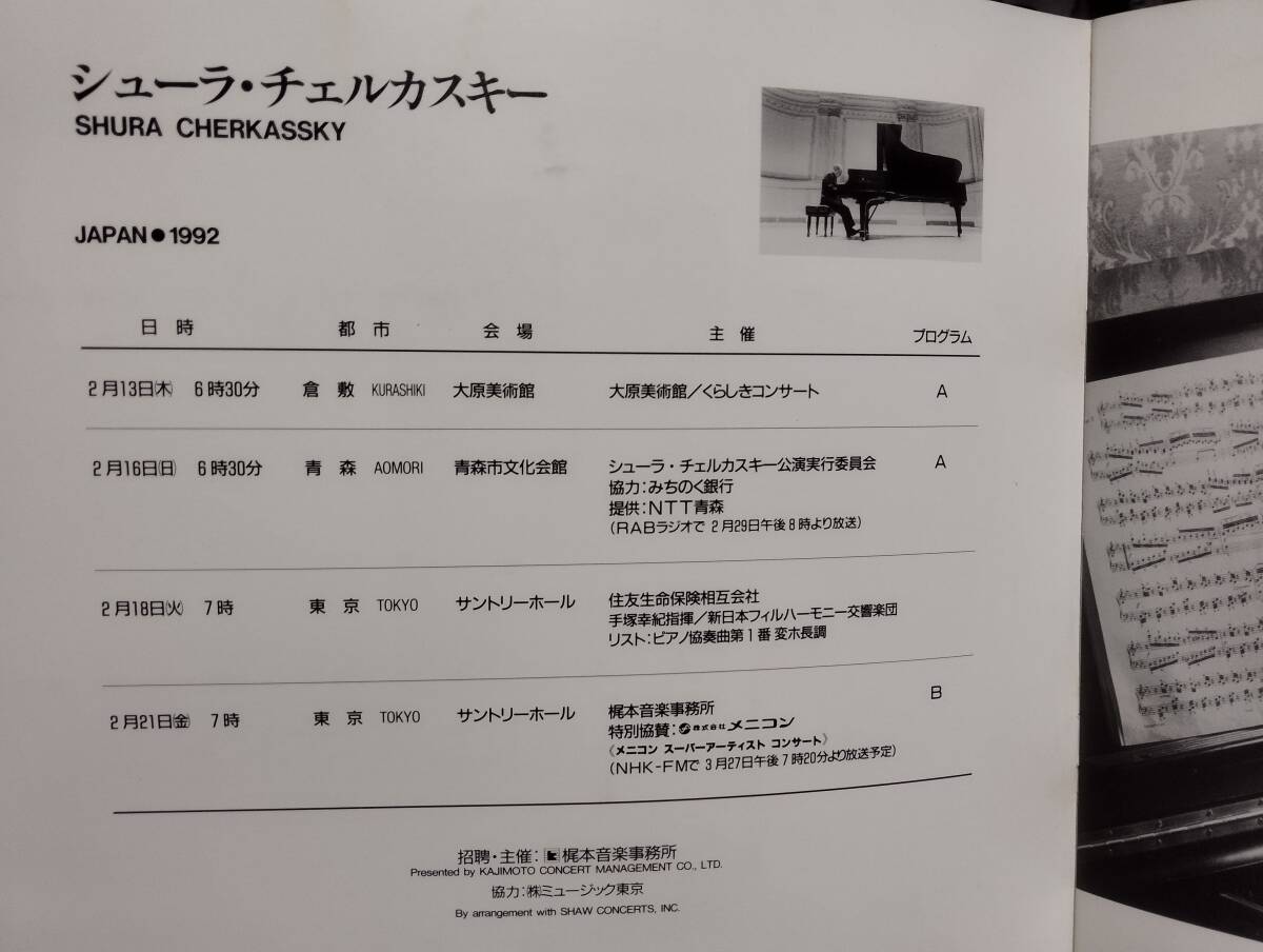 【クラシック・パンフレット】Shura Cherkassky シューラ・チェルカスキー 1992年 日本公演 サイン入り