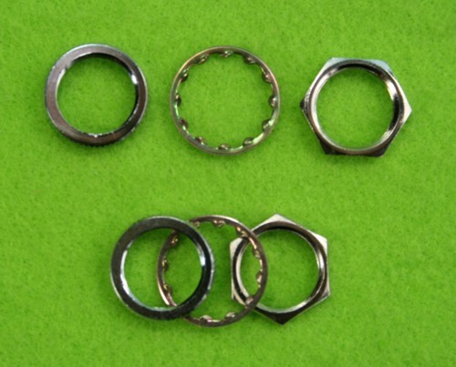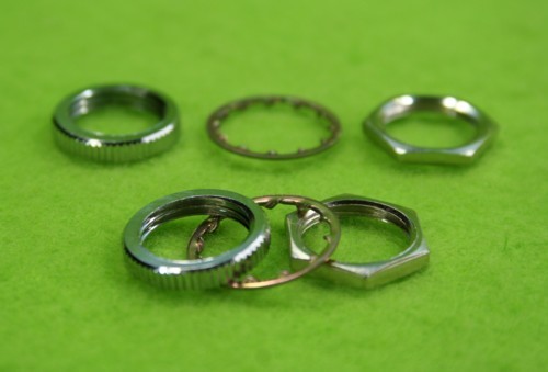 トグルスイッチ用ナット(丸ナット、内歯座金、六角ナットのセット) 1組(2セット)です。